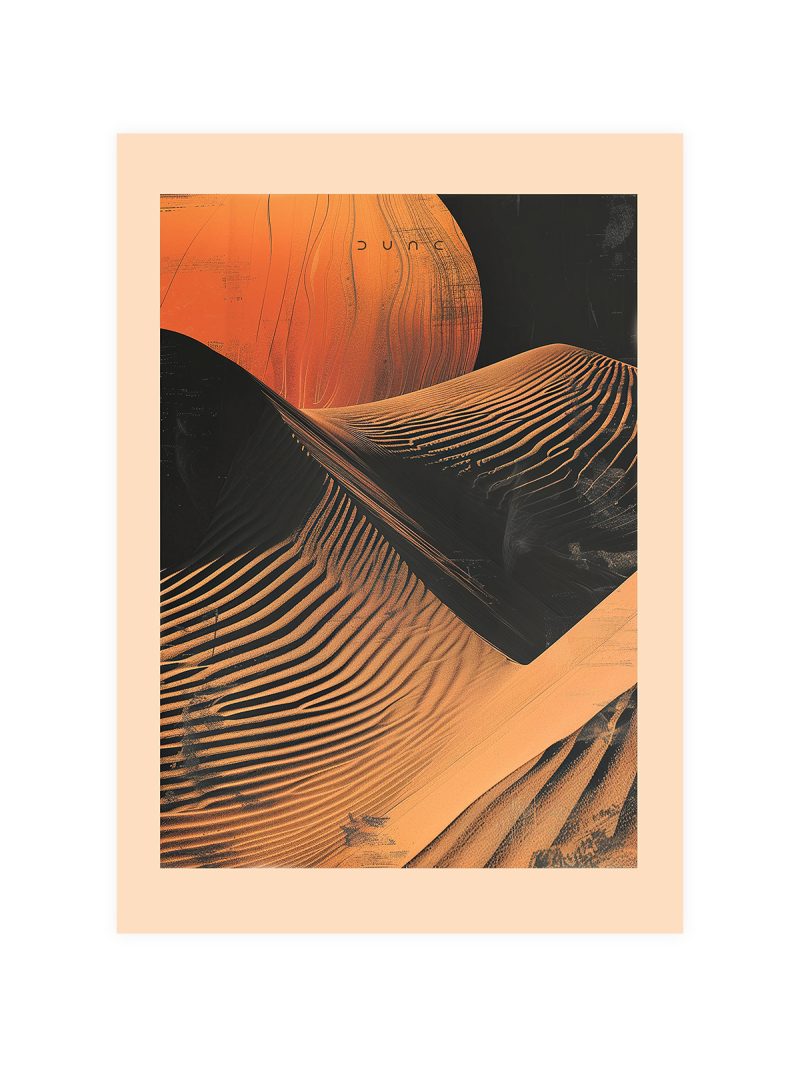 Immerse yourself in the desert world of Arrakis with the Dune Sand Poster, a beautiful portrayal of the iconic dunes that shape the "Dune" universe. This poster captures the essence of Arrakis, offering a piece of the extraordinary landscape to fans and art lovers alike.